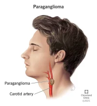 Paragangliomas in the Neck: When paragangliomas develop in the neck, they are typically found along the carotid arteries or near the jugular vein. These tumors can cause symptoms such as a lump or swelling in the neck, difficulty swallowing, or changes in voice.
